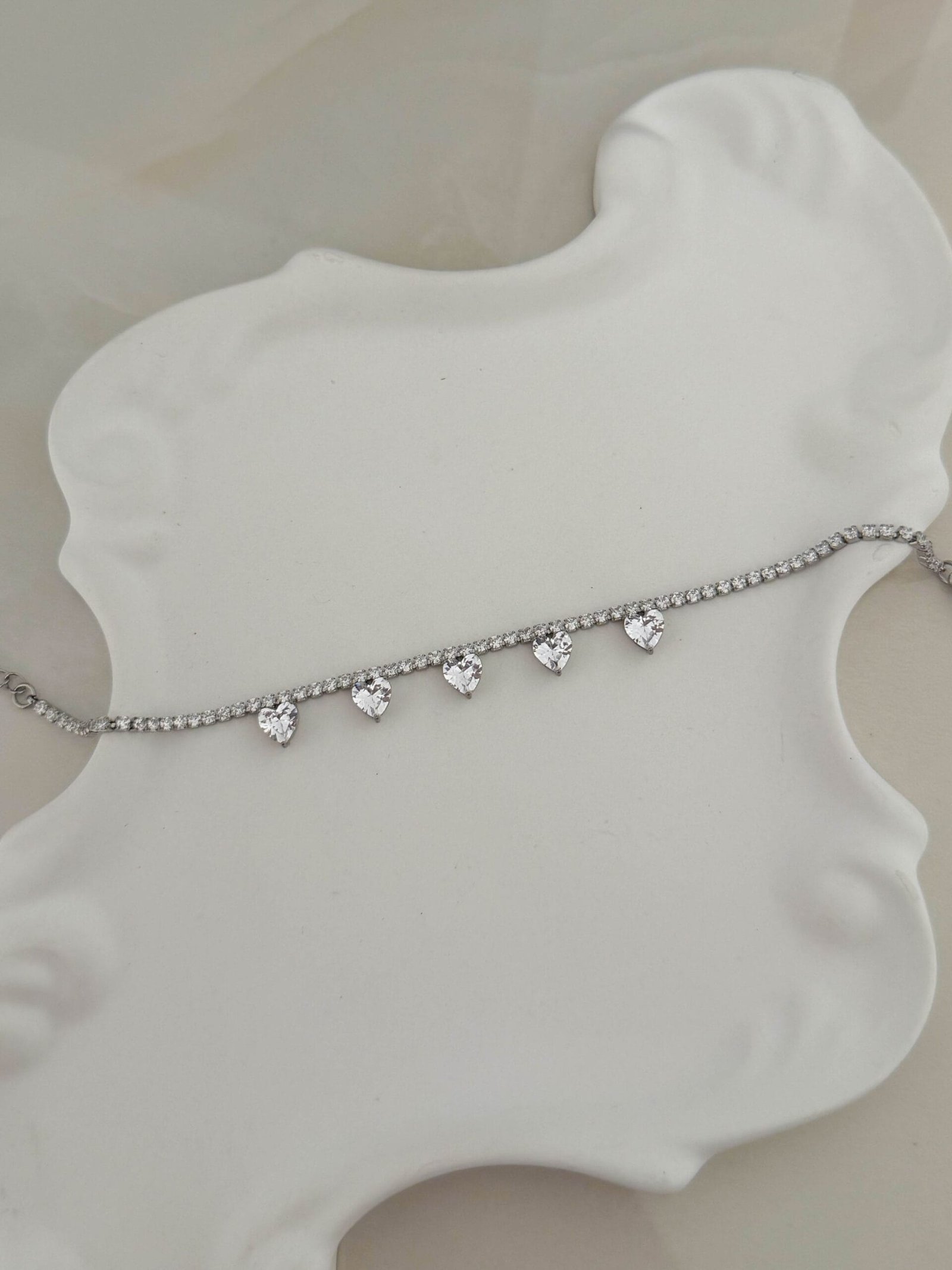 Λαμπερό βραχιόλι τύπου tennis, διακοσμημένο με καρδιές από ζιργκόν που αιχμαλωτίζουν το φως σε κάθε κίνηση. Ένα κομψό και ρομαντικό κόσμημα που συνδυάζει τη διαχρονική φινέτσα με μοντέρνα αισθητική.