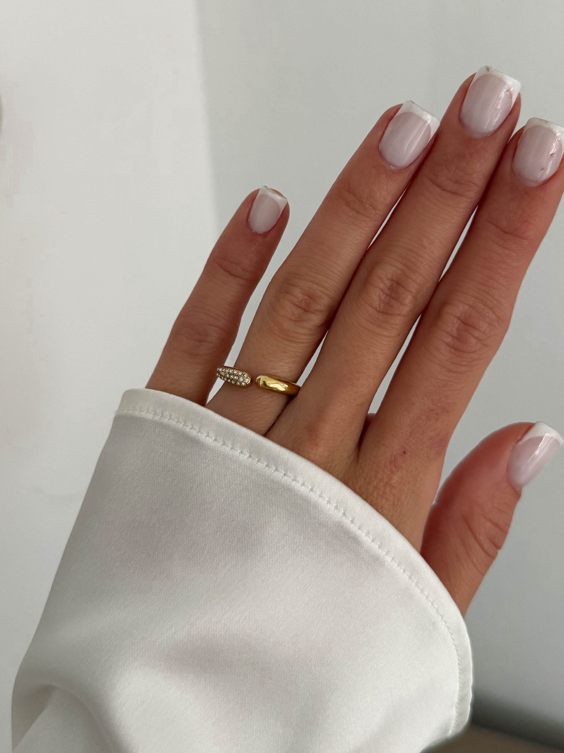 Ένα minimal αλλά εντυπωσιακό σετ δαχτυλιδιών που συνδυάζει τη διαχρονική κομψότητα με τη σύγχρονη αισθητική. Το ένα δαχτυλίδι διαθέτει λαμπερές πέτρες που χαρίζουν διακριτική λάμψη, ενώ το δεύτερο έχει sleek, καθαρό φινίρισμα για ένα ισορροπημένο αποτέλεσμα. Φοριούνται μαζί ή και ξεχωριστά, προσθέτοντας effortless elegance σε κάθε look.