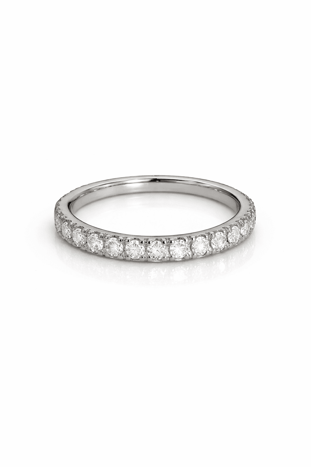 Λεπτό δαχτυλίδι τύπου tennis, διακοσμημένο με λαμπερές πέτρες σε ολόκληρη την επιφάνειά του, που χαρίζουν διαχρονική κομψότητα και έντονη λάμψη.