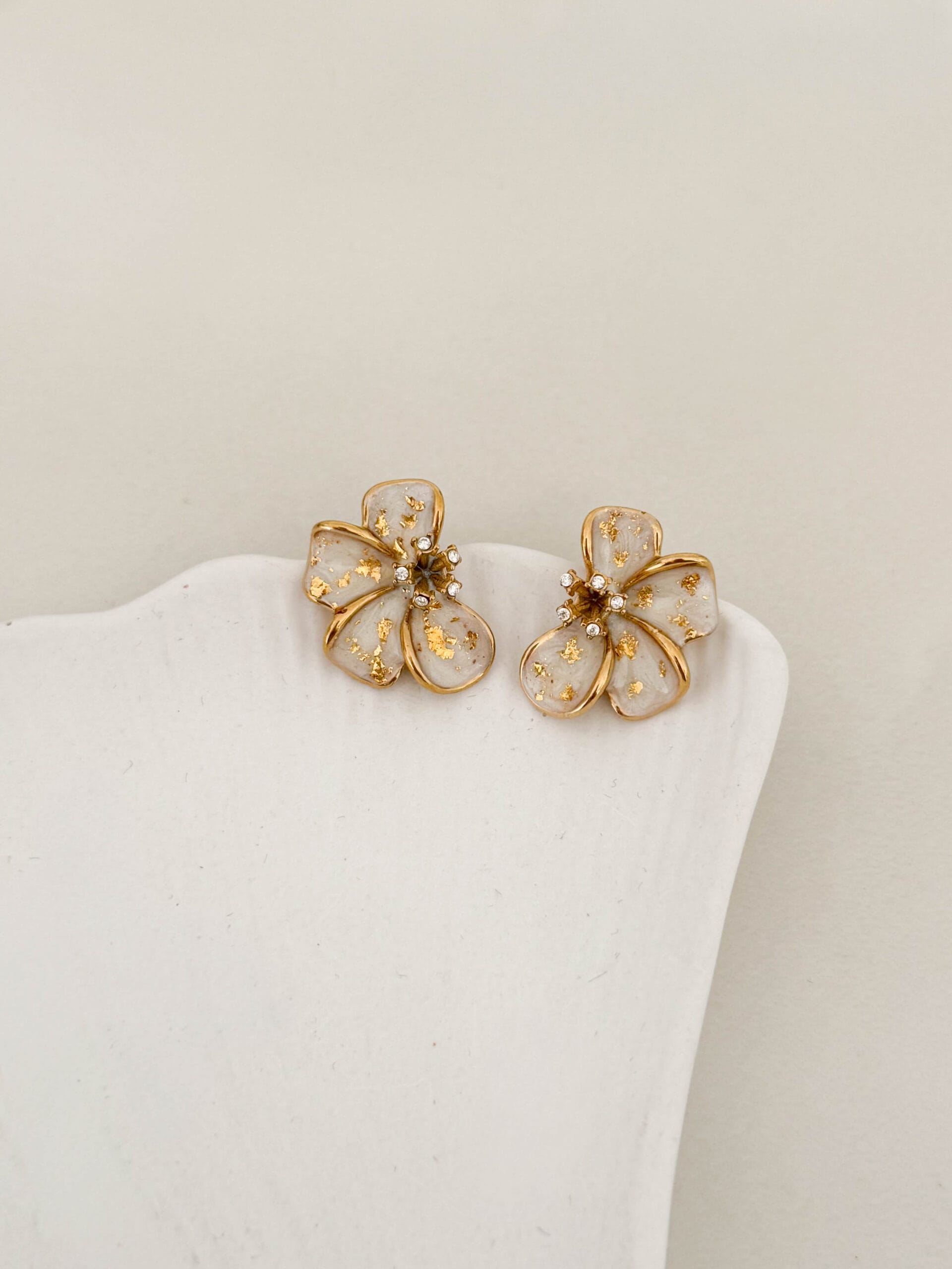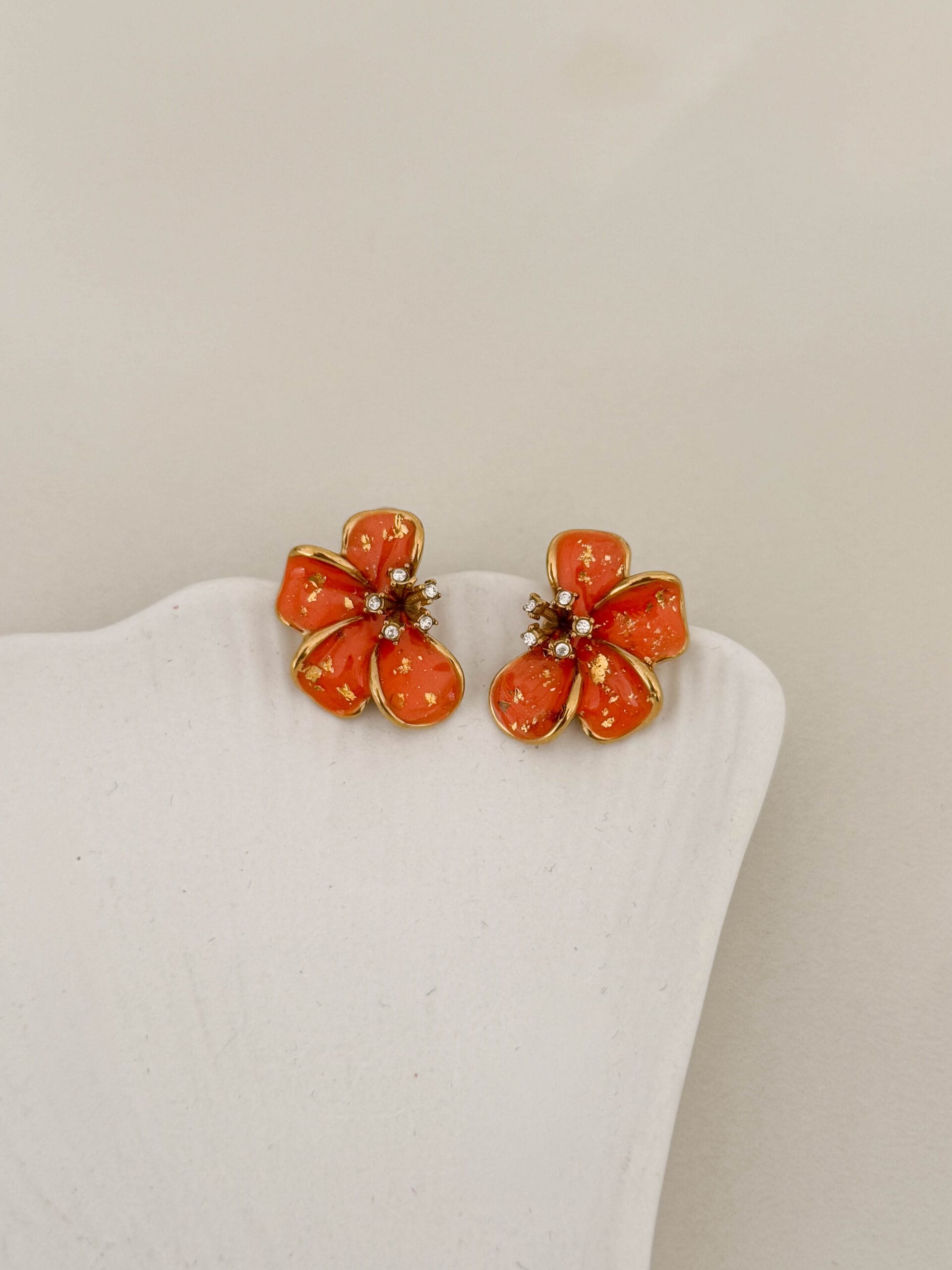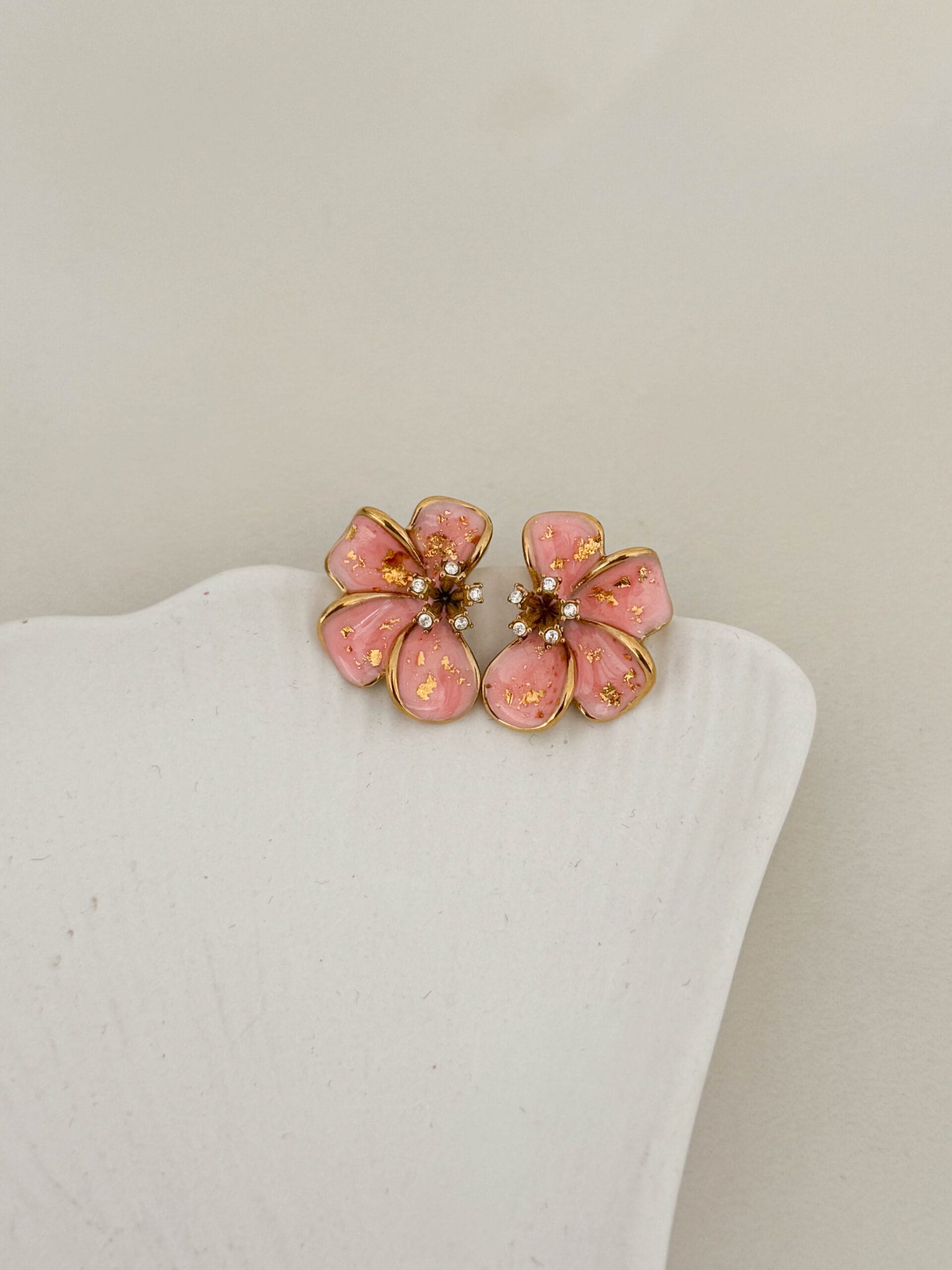 Σκουλαρίκια από ανοξείδωτο ατσάλι σε χρυσό τόνο με σχέδιο λουλουδιού και χρωματιστό σμάλτο. Ένα ρομαντικό και ανοιξιάτικο κόσμημα που προσθέτει χρώμα και φρεσκάδα σε κάθε εμφάνιση. Διατίθεται σε διαφορετικές αποχρώσεις.