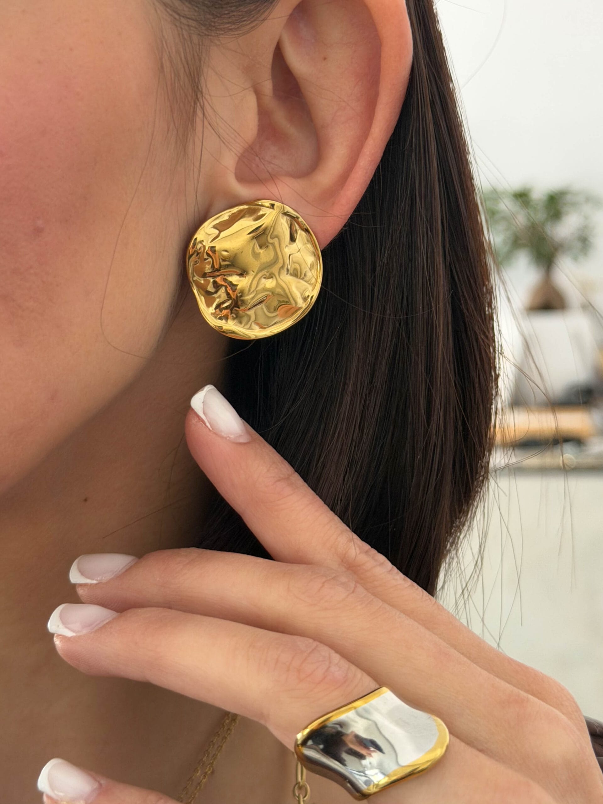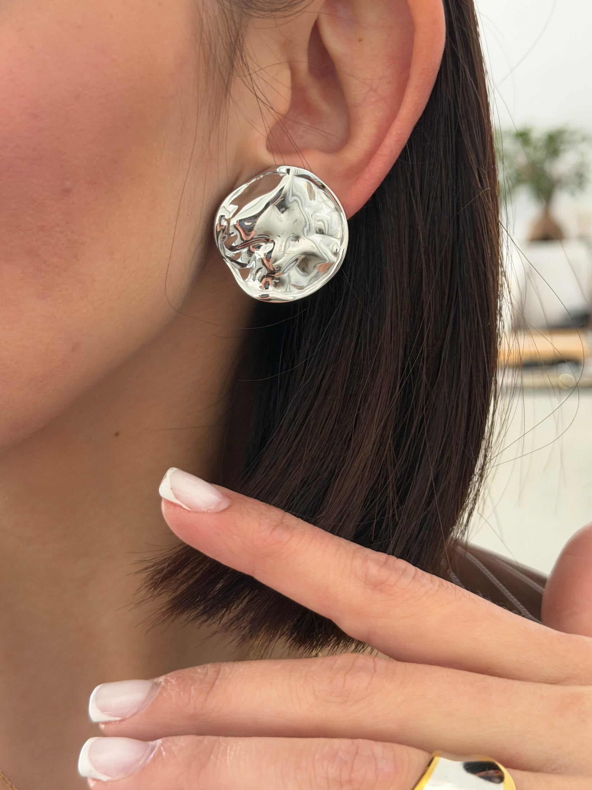 Κλιπ σκουλαρίκια από ανοξείδωτο ατσάλι με ιδιαίτερη σφυρήλατη υφή. Ένα μοντέρνο και κομψό κόσμημα που φοριέται εύκολα χωρίς τρύπα και ολοκληρώνει κάθε εμφάνιση με στυλ.