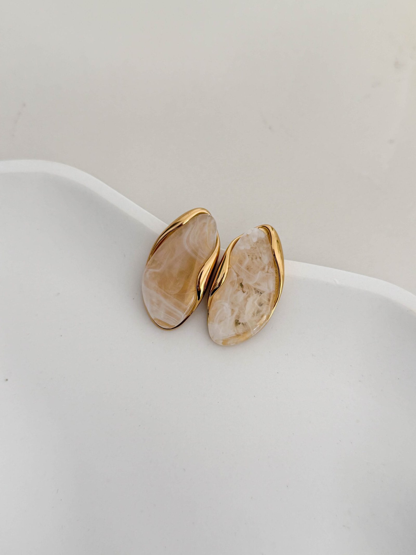 Minimal καρφωτά σκουλαρίκια με οβάλ φυσική πέτρα σε γήινες αποχρώσεις και χρυσό πλαίσιο. Κομψά και διαχρονικά, ιδανικά για καθημερινές εμφανίσεις με φυσικό χαρακτήρα.