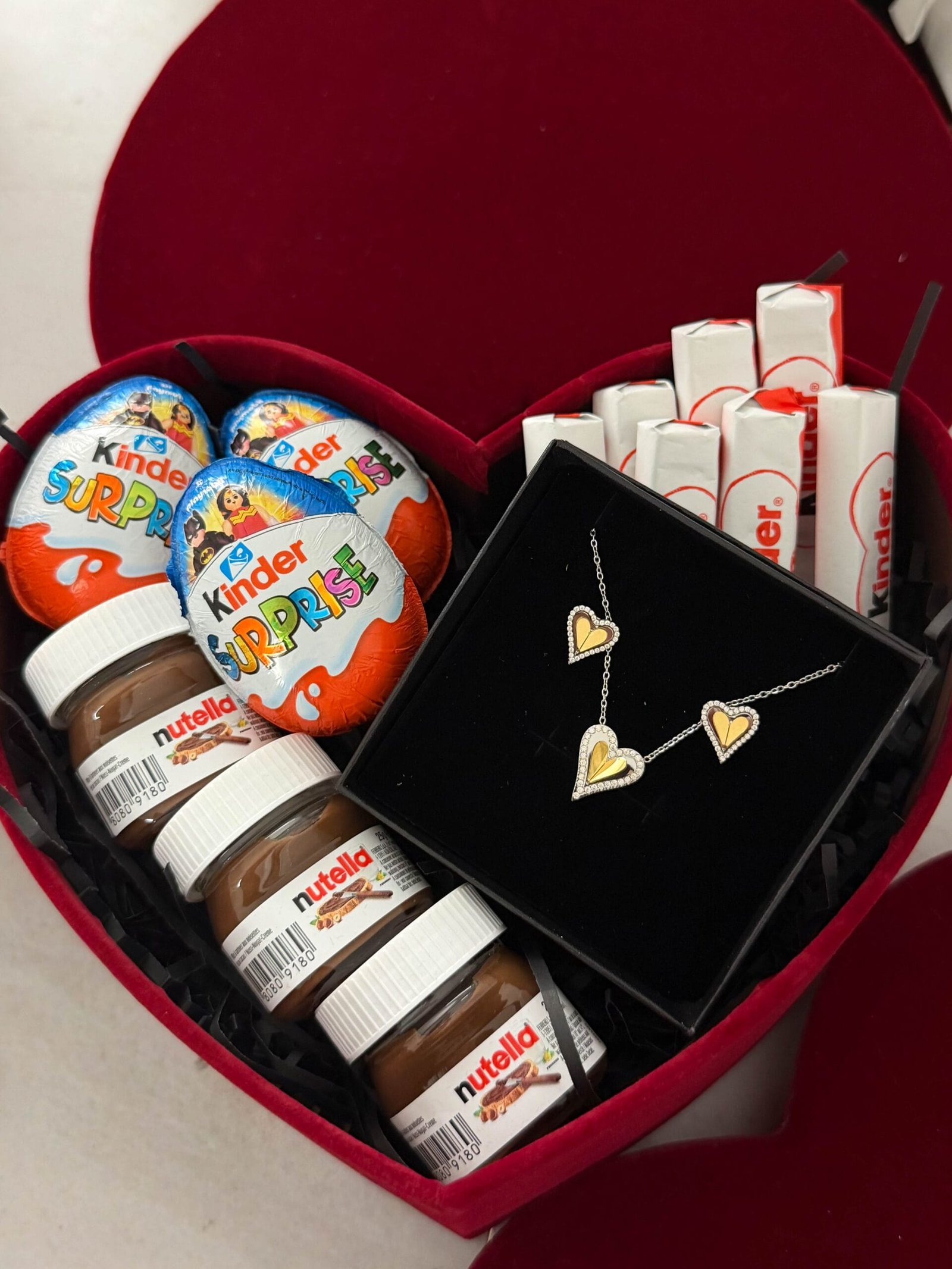 Ένα εντυπωσιακό Valentine’s box σε σχήμα καρδιάς, γεμάτο γλυκές απολαύσεις και ένα κομψό σετ κοσμήματος που κάνει τη διαφορά.