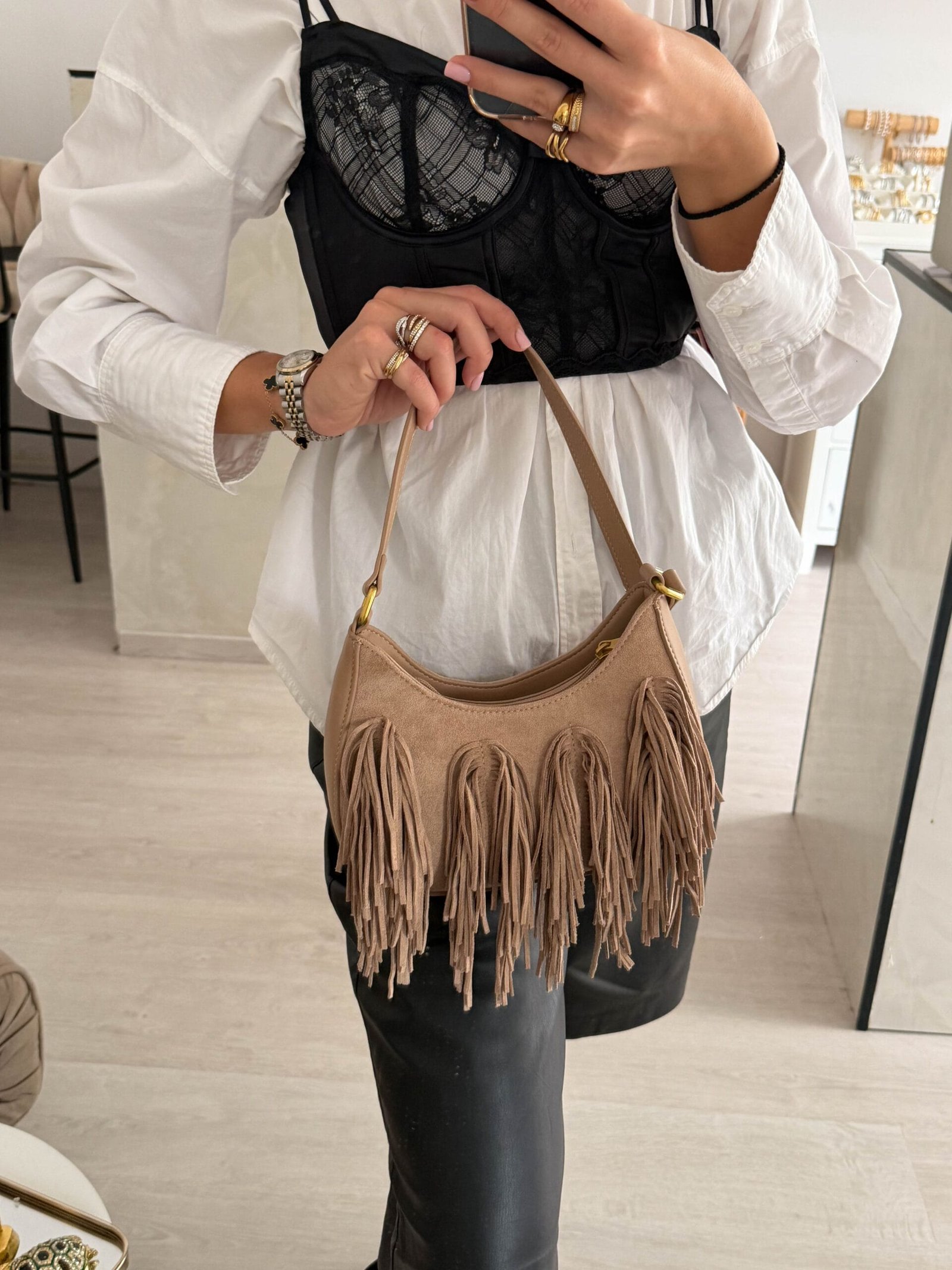 Το μπεζ χρώμα της φέρνει φως και καθαρότητα, ενώ τα κρόσσια που κρέμονται προσθέτουν κίνηση και παιχνιδιάρικη κομψότητα.