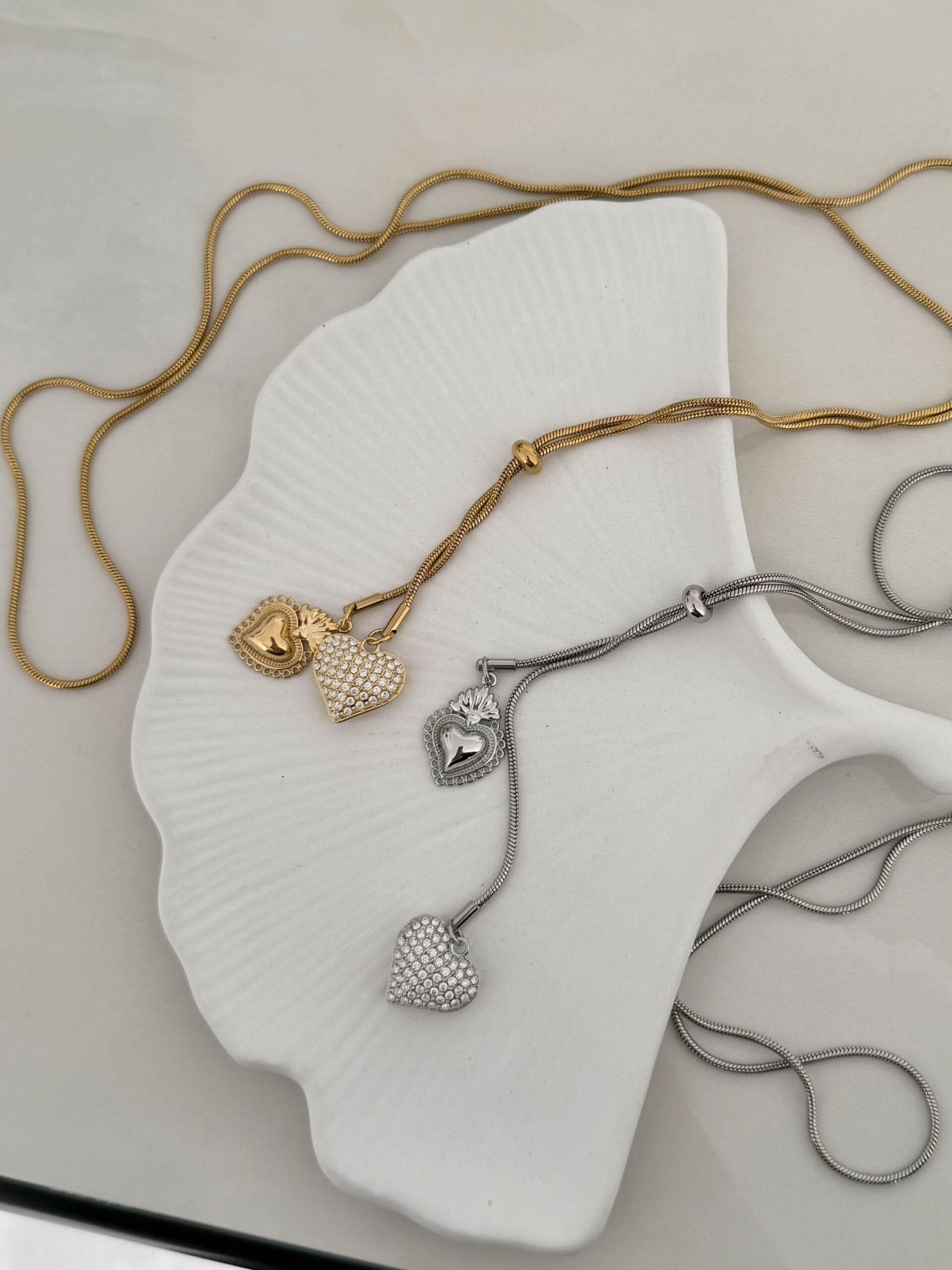 Από τη μία πλευρά, μια καρδιά, διακριτική και κομψή και από την άλλη, μια γεμάτη καρδιά με στρας,