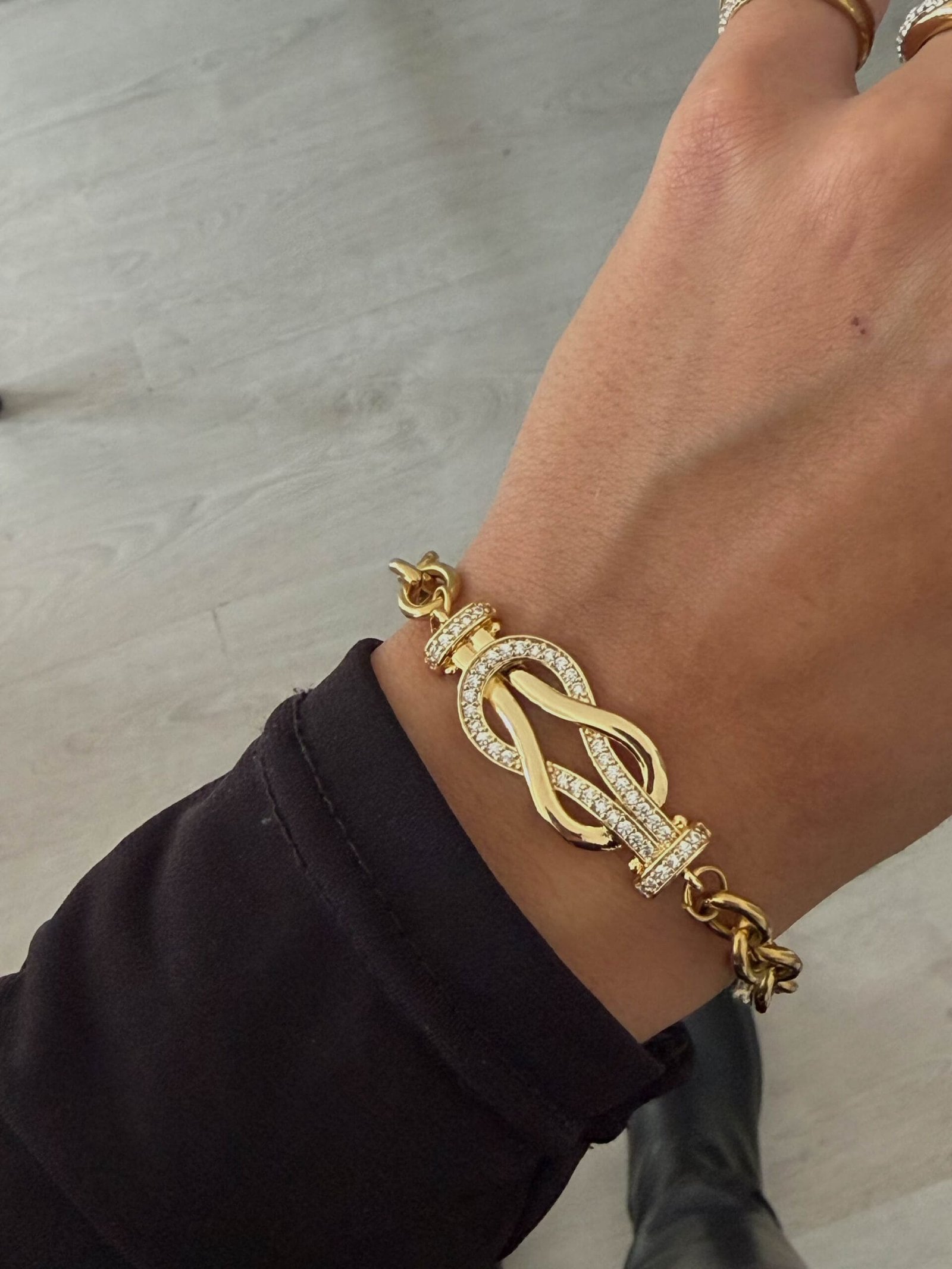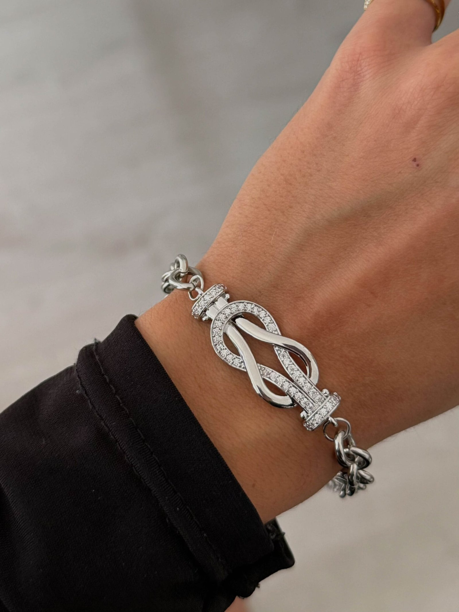 στολισμένη με στρας, δημιουργώντας ένα βραχιόλι που ακτινοβολεί φινέτσα και εκλεπτυσμένη πολυτέλεια.