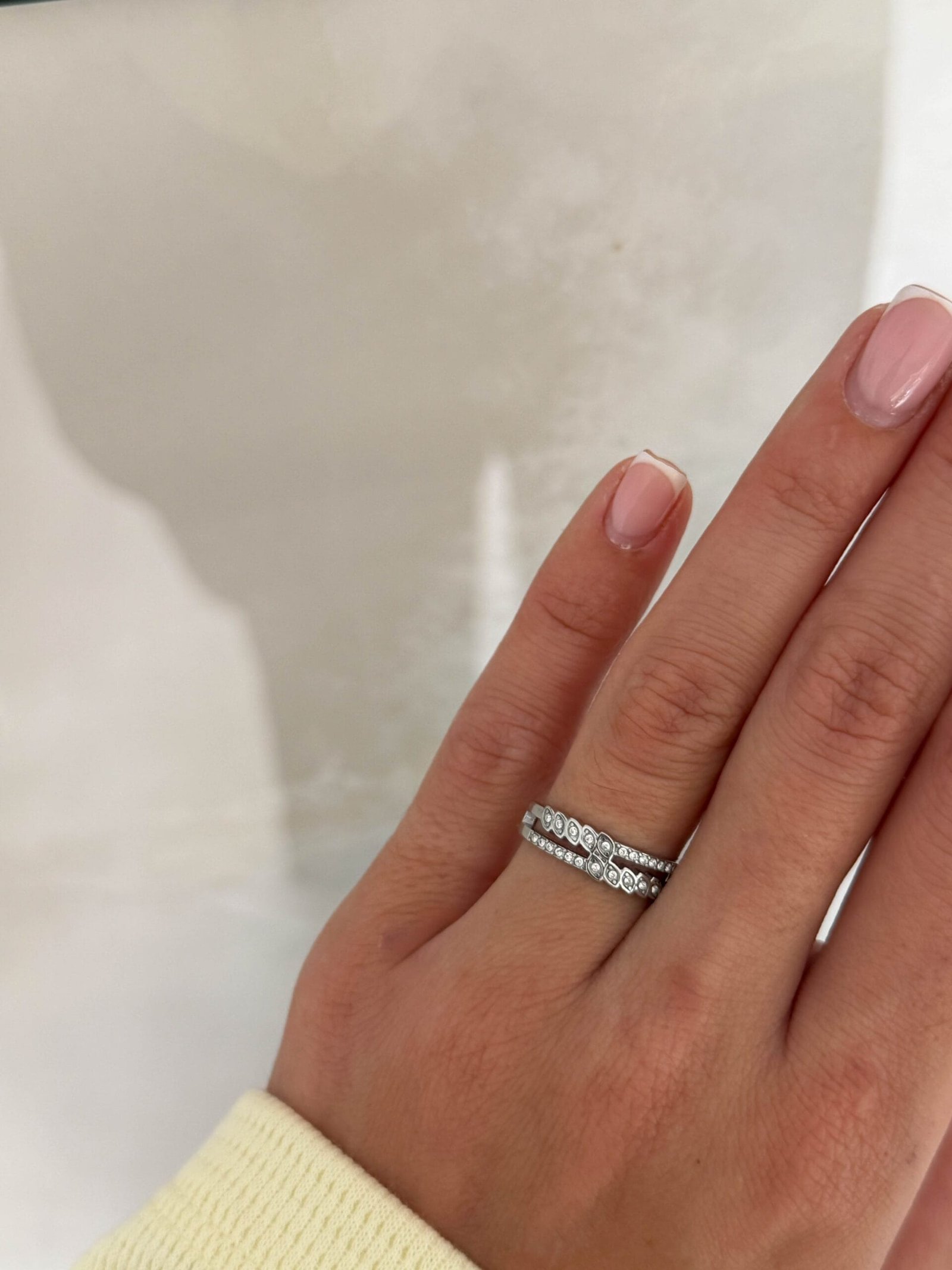 Το Radiant Pair είναι ένα δίβερο δαχτυλίδι διακοσμημένο με λαμπερά στρασάκια σε κάθε γραμμή,