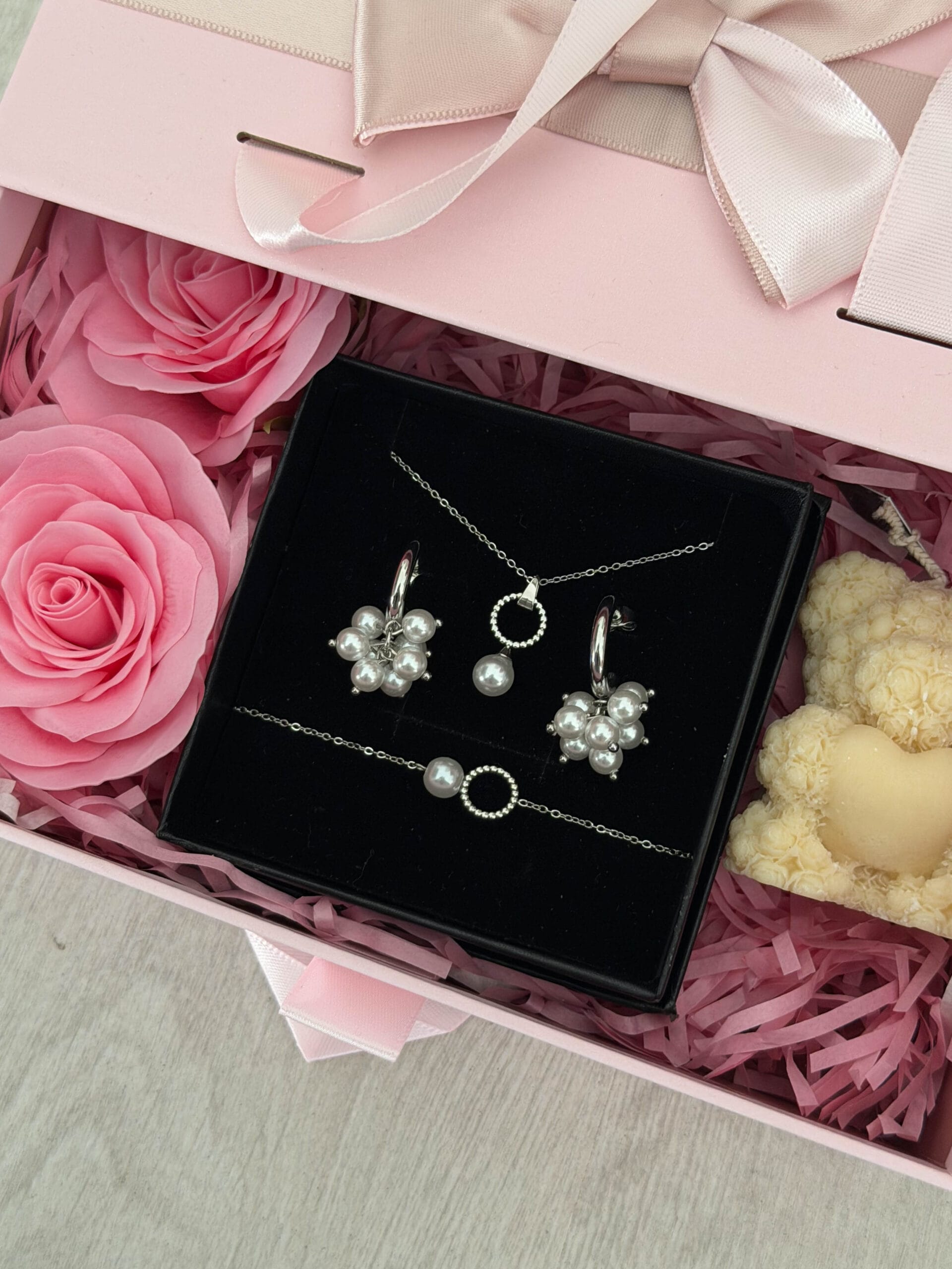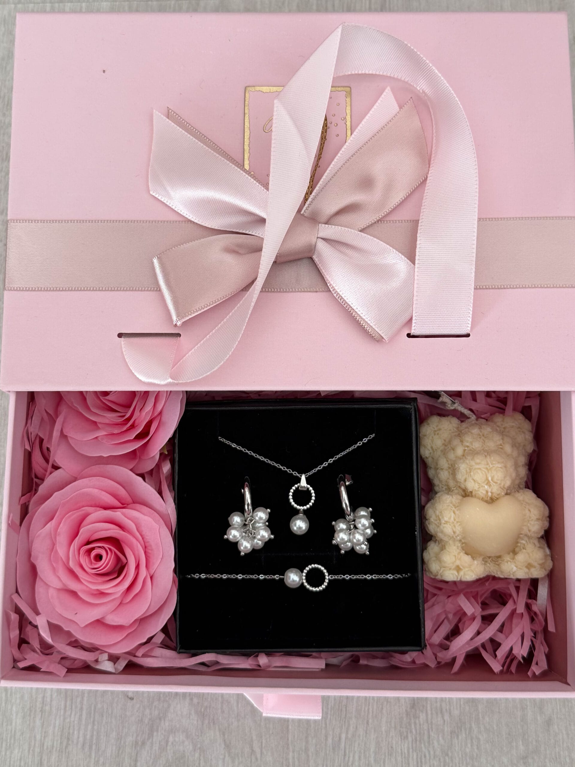 Περιλαμβάνει ένα κομψό σετ κοσμημάτων, διακοσμητικά τριαντάφυλλα, χειροποίητο κερί , όλα προσεκτικά τοποθετημένα σε ένα πολυτελές κουτί δώρου με σατέν κορδέλα.
